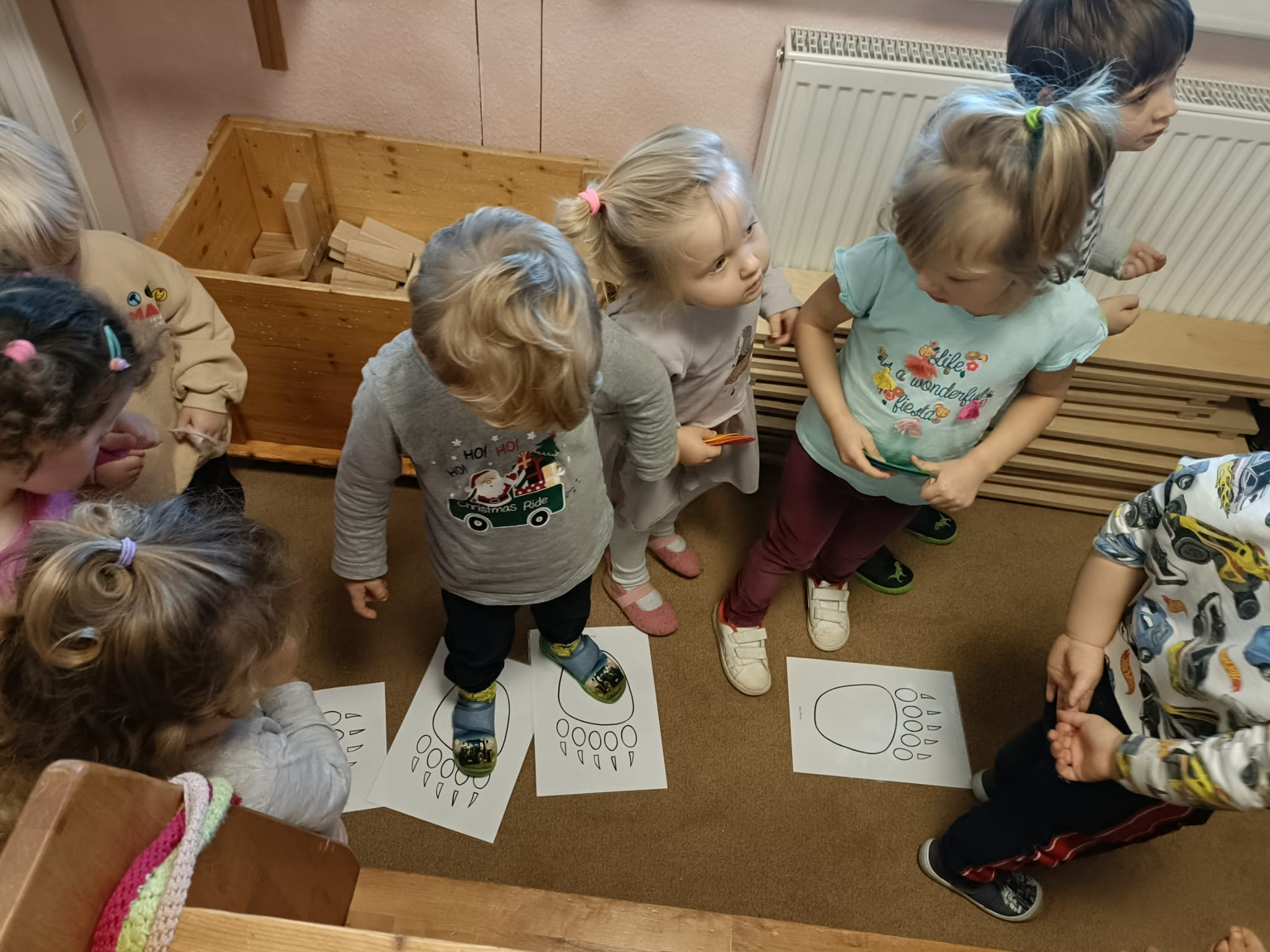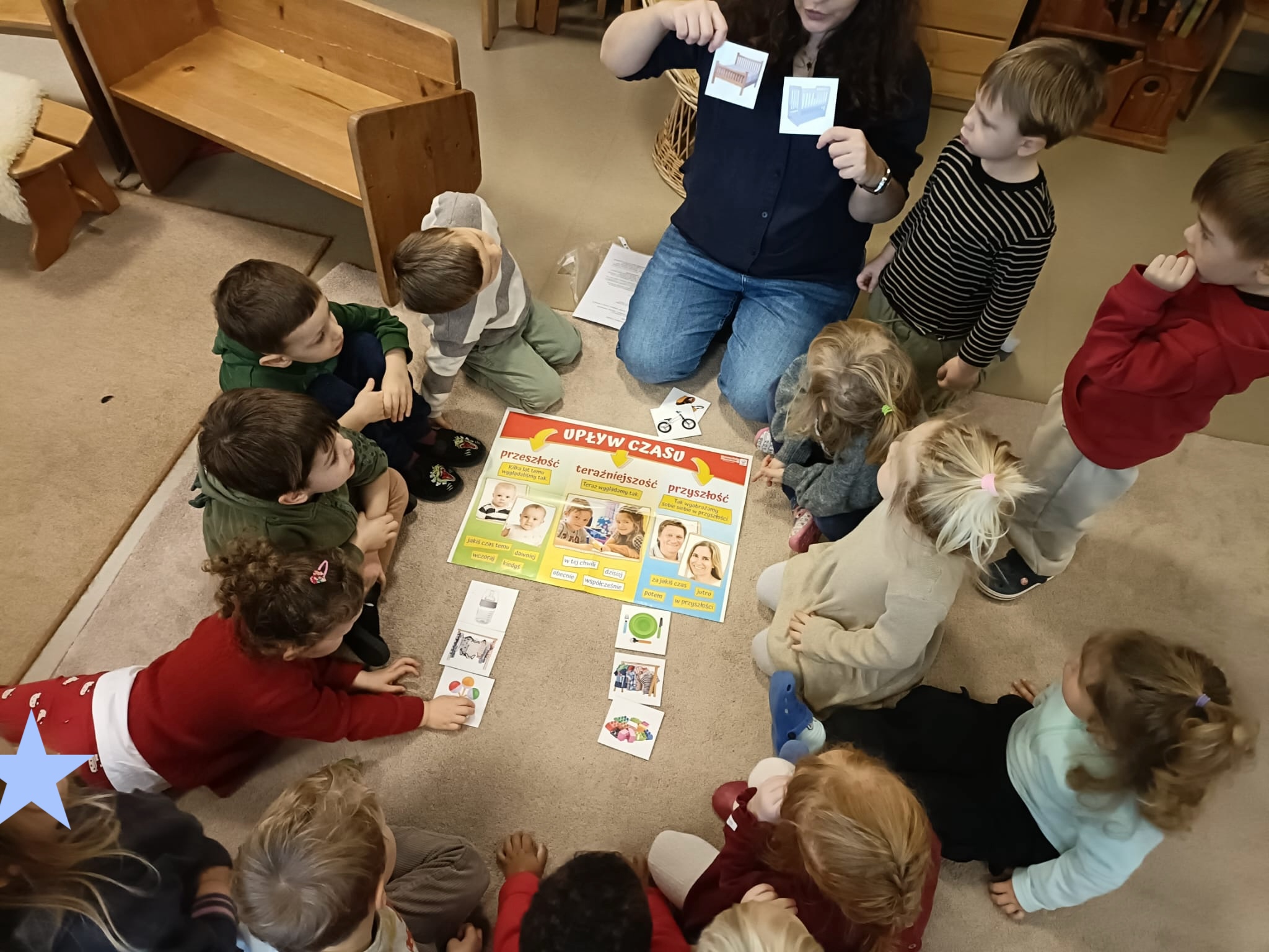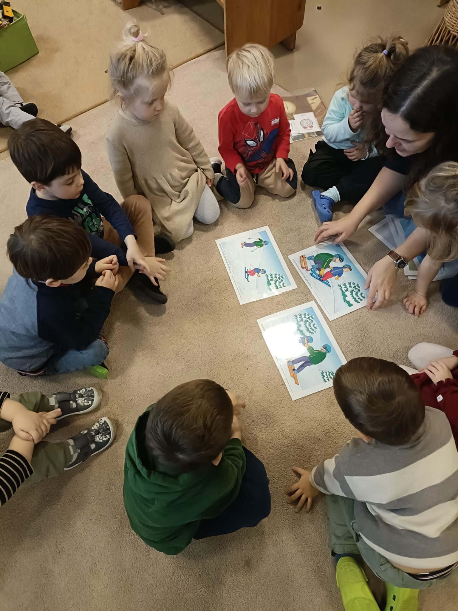 Na pierwszych zajęciach w styczniu dzieci zrobiły laurki dla Babci i Dziadka. Rozmawialiśmy o tym, czym jest czas i jak dużo przedszkolaki już potrafią same zrobić. Dzieci tworzyły krótkie wypowiedzi na podstawie historyjek obrazkowych.