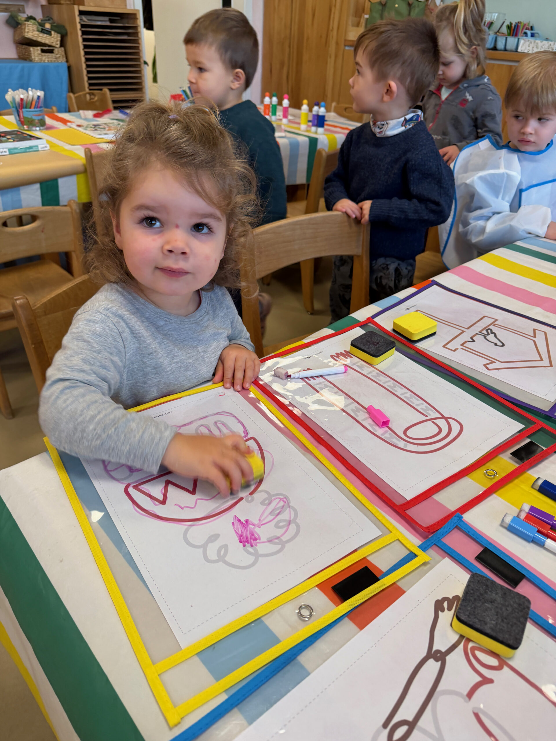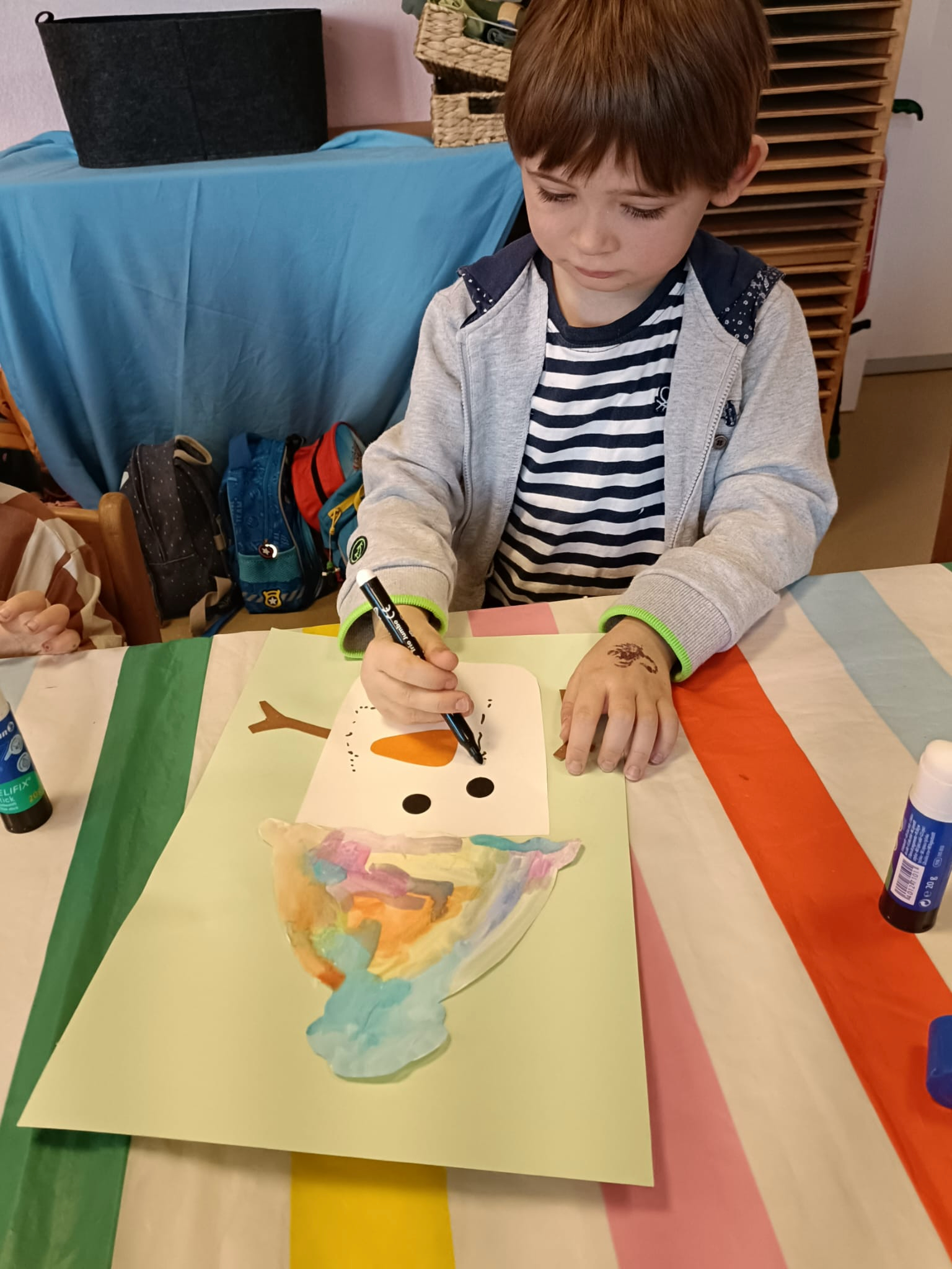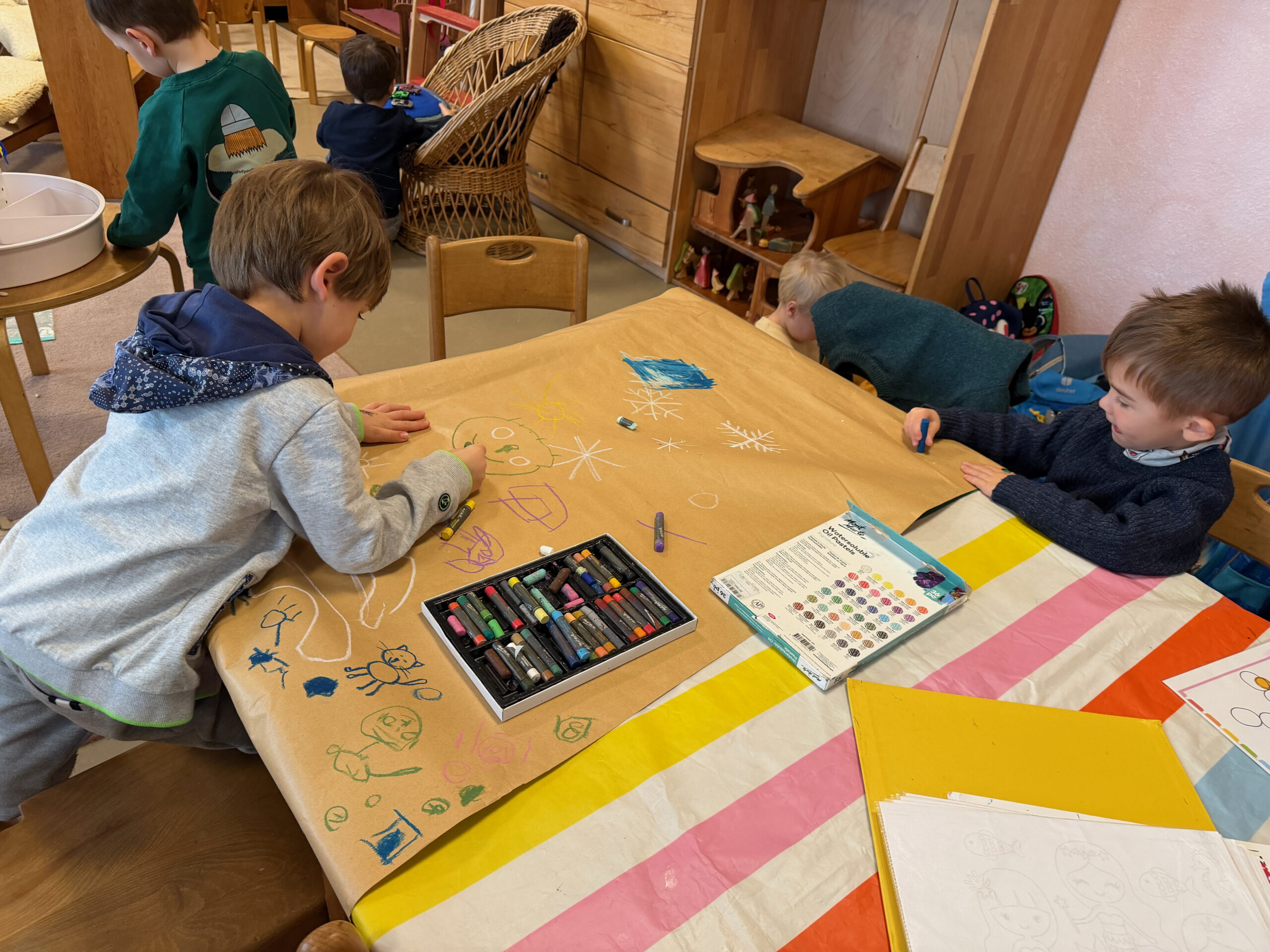 Na pierwszych zajęciach w styczniu dzieci zrobiły laurki dla Babci i Dziadka. Rozmawialiśmy o tym, czym jest czas i jak dużo przedszkolaki już potrafią same zrobić. Dzieci tworzyły krótkie wypowiedzi na podstawie historyjek obrazkowych.