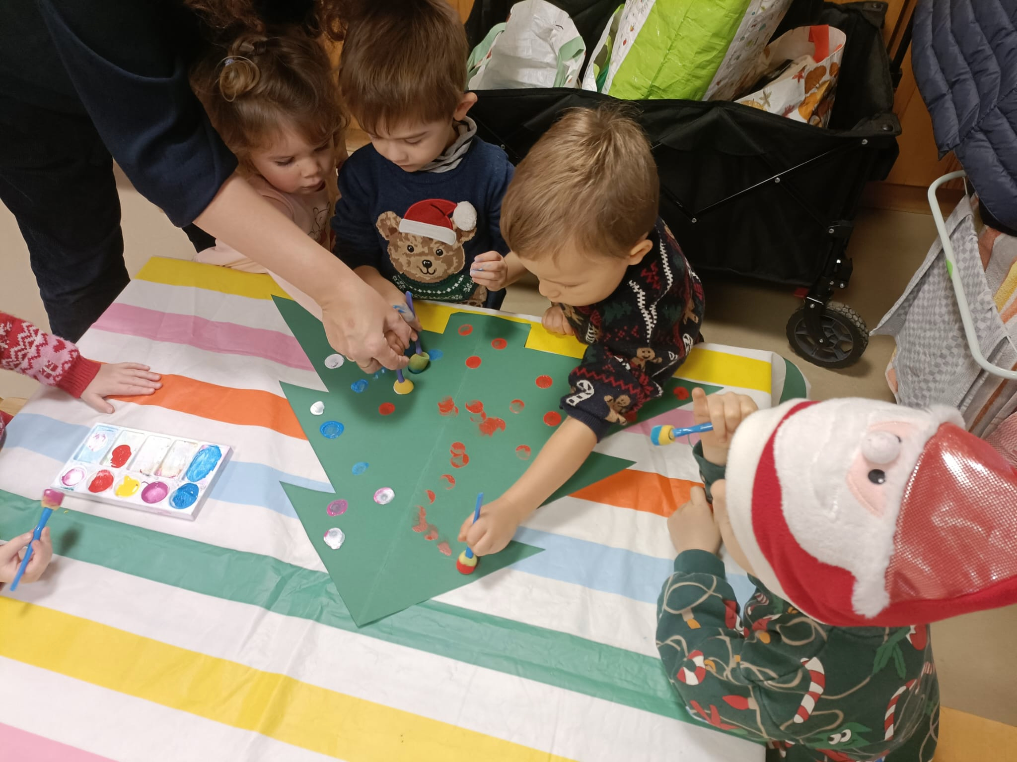 Starając się wprowadzić świąteczną atmosferę w przedszkolu upiekliśmy pierniczki, ubieraliśmy małą choinkę, przygotowywaliśmy ozdoby, słuchaliśmy kolęd, świątecznych piosenek i wierszy.