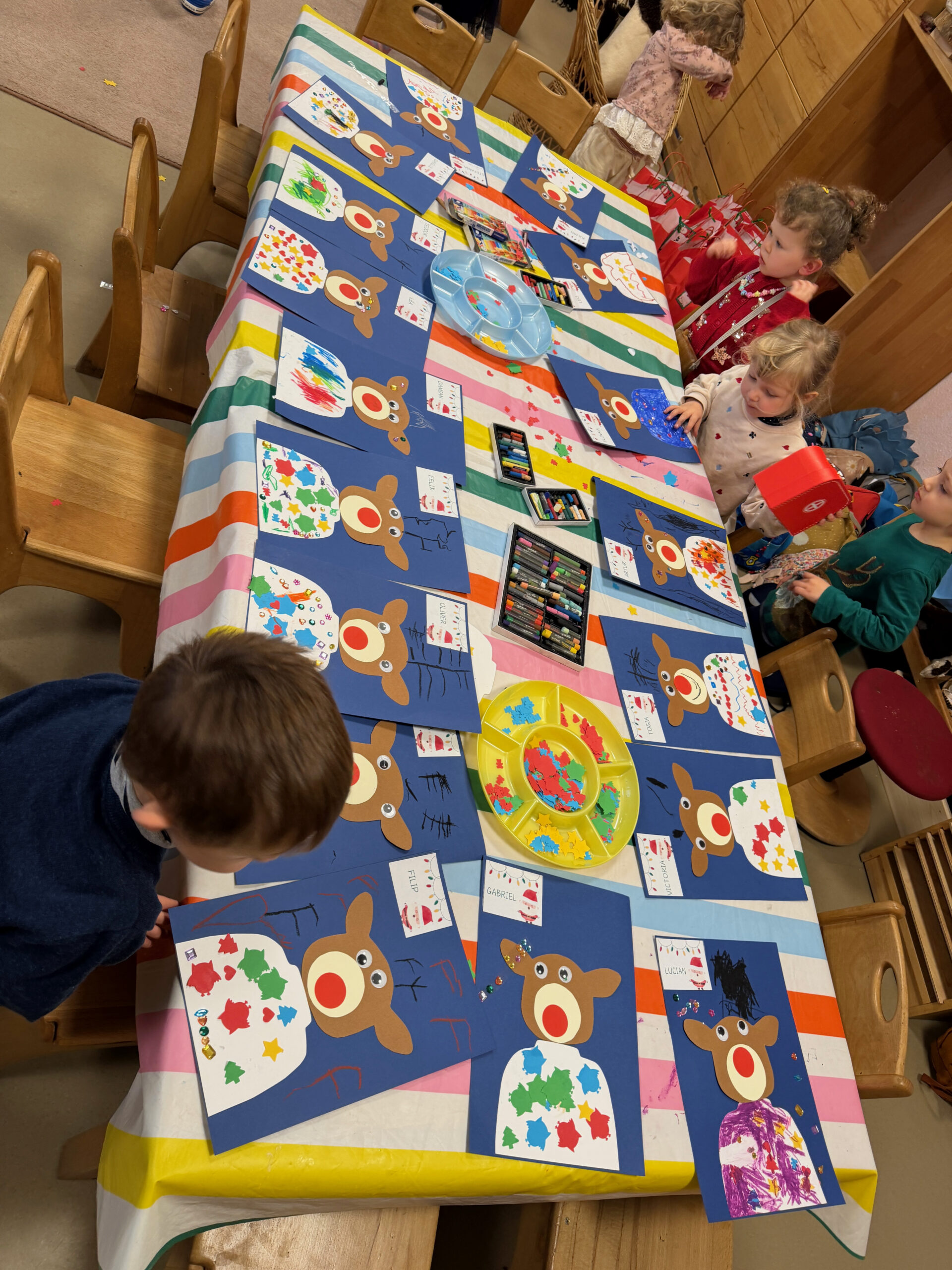 W grudniu nasze przedszkole odwiedził Mikołaj, który przyniósł dzieciom prezenty. Dzieci przygotowały dla Mikołaja laurkę i zaśpiewały piosenkę „Chodź gwiazdeczko”. W ten dzień odbył się także zimowy konkurs plastyczny. Tematem tegorocznej pracy był „Renifer – pomocnik Mikołaja”.
