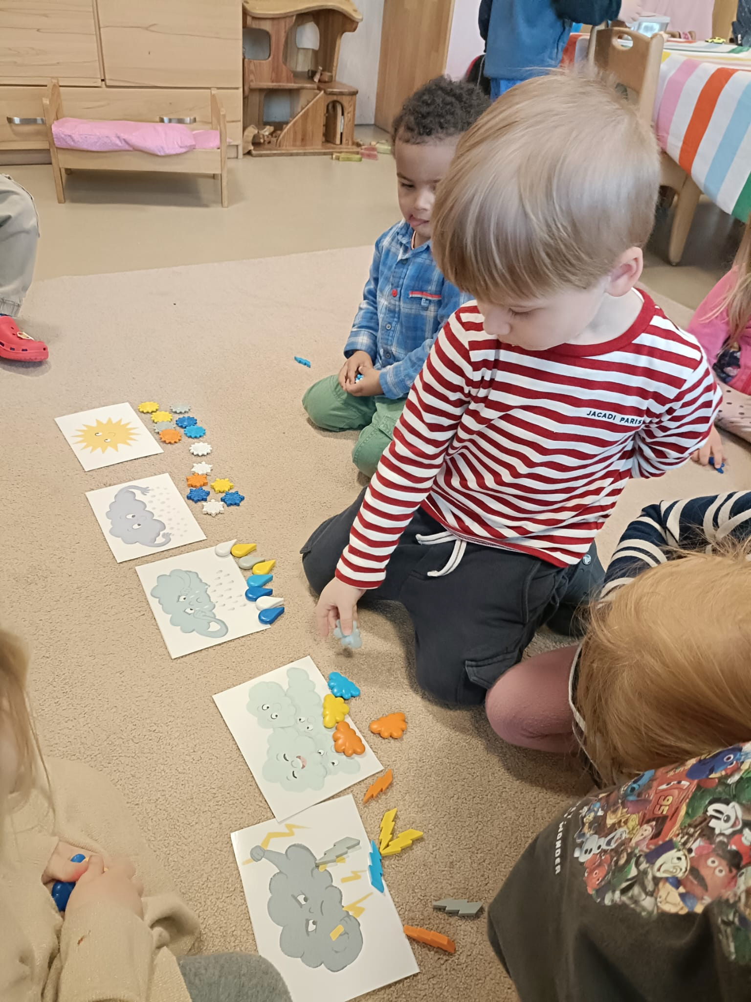 Pierwsze zajęcia w marcu upłynęły nam na przygotowywaniu prezentów i ćwiczeniu piosenek na występ z okazji Dnia Rodziców, ale znaleźliśmy też czas na rozmowę o marcowej pogodzie i polskim przysłowiu „W marcu, jak w garncu”.