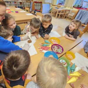 Minione zimowe miesiące w grupie Pszczółek były pełne radości, ciekawych tematów i nowych doświadczeń. W grudniu odwiedził nas Święty Mikołaj. Dzieci z ogromną radością powitały gościa i otrzymały prezenty.
